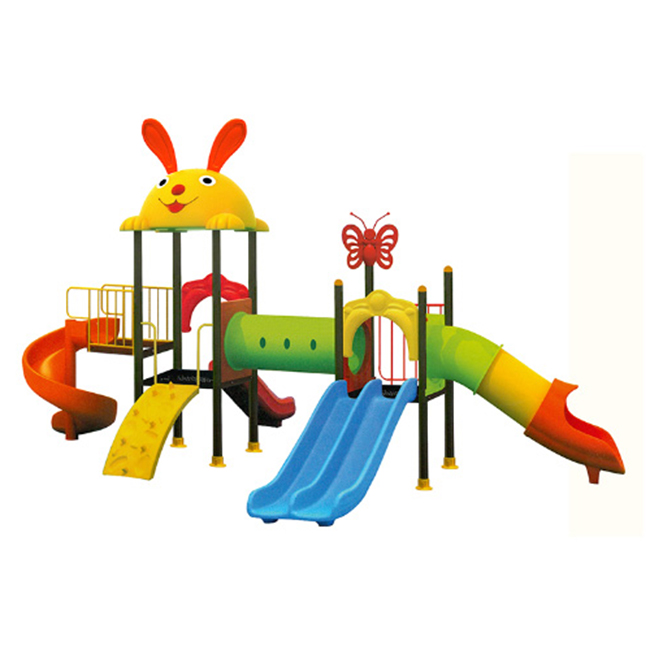 - Cầu trượt liên hoàn ngoài trời 3 khối mẫu SC1-013 được thiết kế đa năng gồm: 1 mái nhà chòi hình Thỏ bằng nhựa nhập khẩu, 1 máng trượt đơn, 1 máng trượt xoắn, 1 máng trượt đôi, 1 máng trượt ống, 1 cầu thang cong bằng nhựa, 2 khối được kết nối với nhau bằng 1 ống chui nhựa nhập khẩu, cùng các vách trang trí bằng nhựa cao cấp, phụ kiện trang trí đầu cột hình con bướm bằng nhựa.